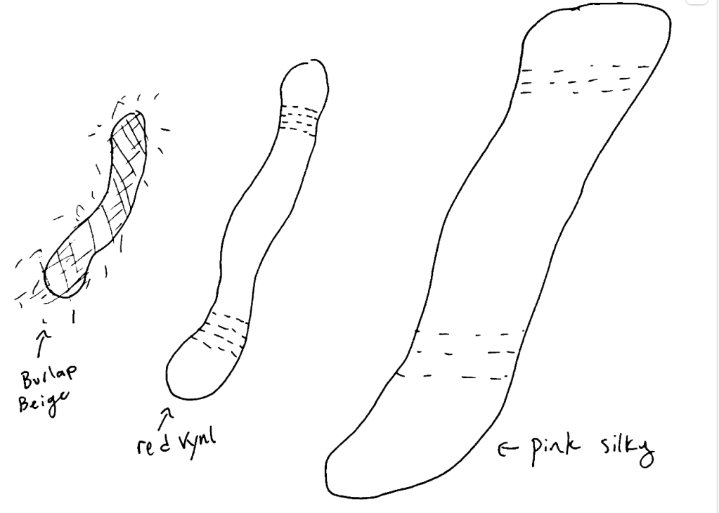 Dust God starts by sewing a small worm (burlap sack material) and filling it with dust.